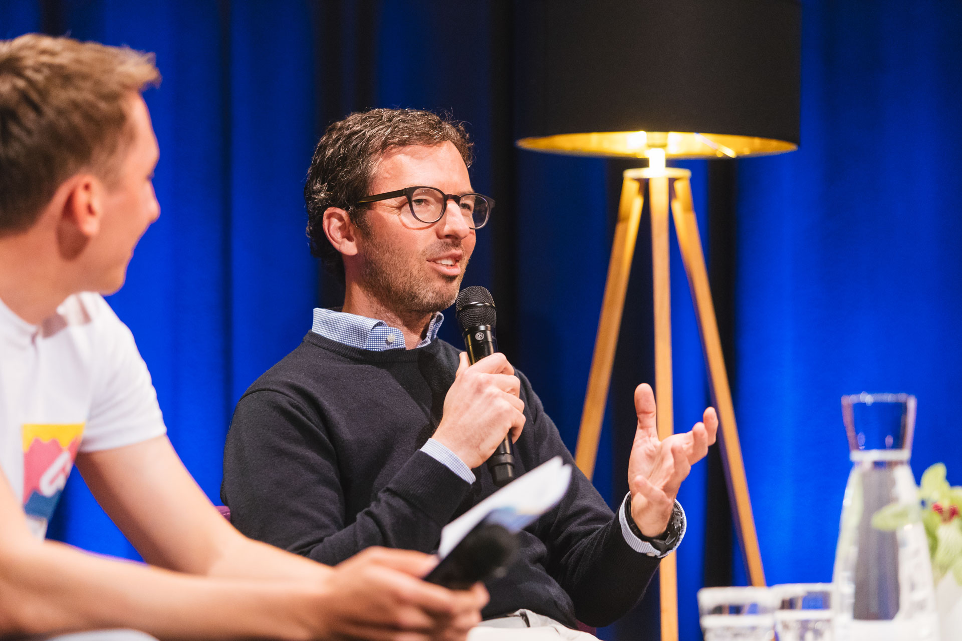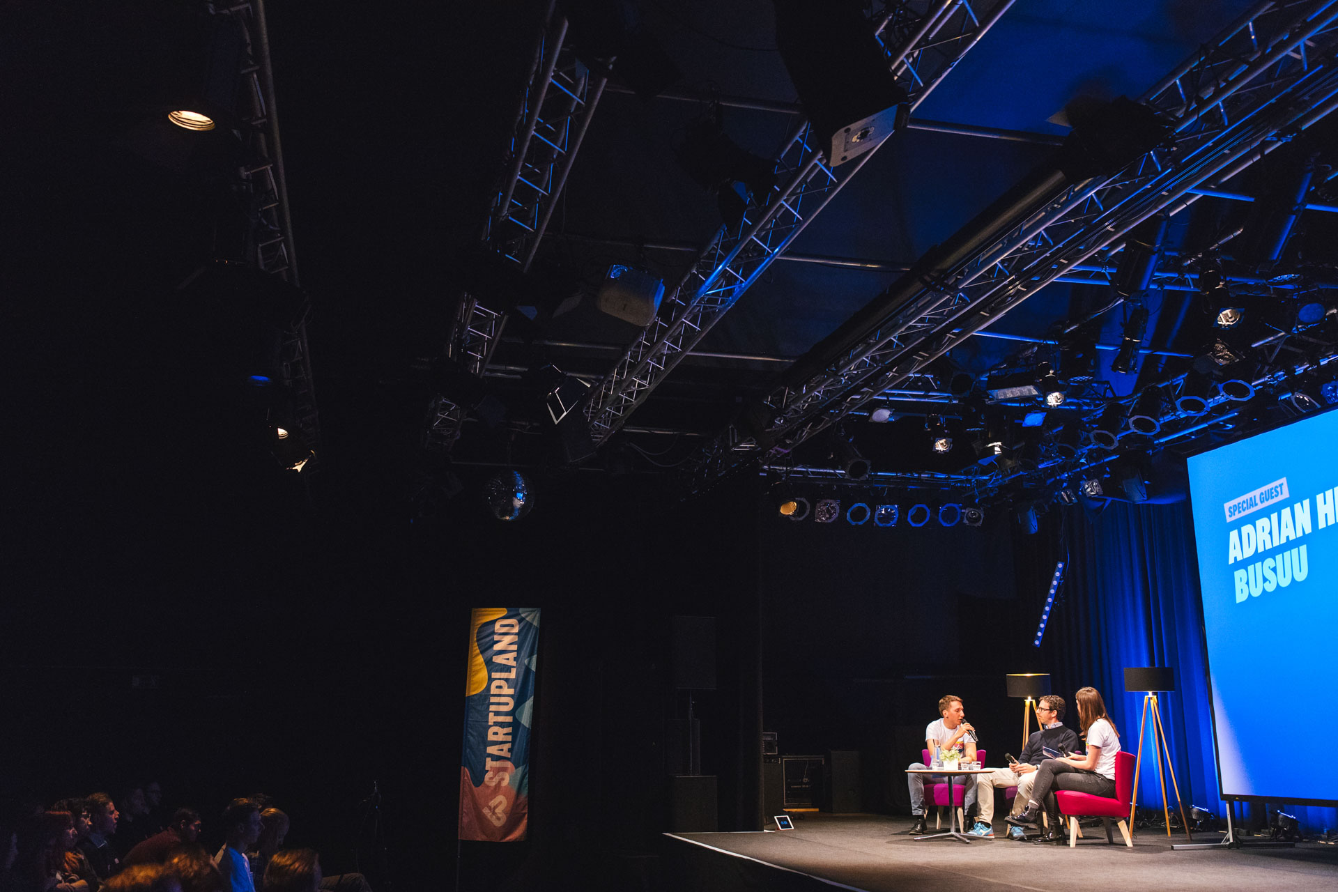 Dann ging’s los mit dem ersten Special Gast des Abends! Auf der Bühne war Adrian Hilti, Co-Founder von busuu. Busuu ist eine Sprachlern-App mit 90 Millionen Nutzern. Und zu den 90 Millionen Nutzern kommen pro Tag 30.000 dazu, die eine neue Sprache lernen wollen. 100 Leute arbeiten heute in London für Busuu und es werden immer mehr. Doch Sprachen lernen war früher eigentlich nie die Leidenschaft des gebürtigen Liechtensteiners. Es war zeitaufwändig und passierte irgendwie nicht von selbst. So kam die Idee, die sozialen Platzformen zu kombinieren und so das Sprachen lernen zu erleichtern. Busuu entstand – und Adrian sieht es heute als spannendeste Erfahrung seines Lebens.