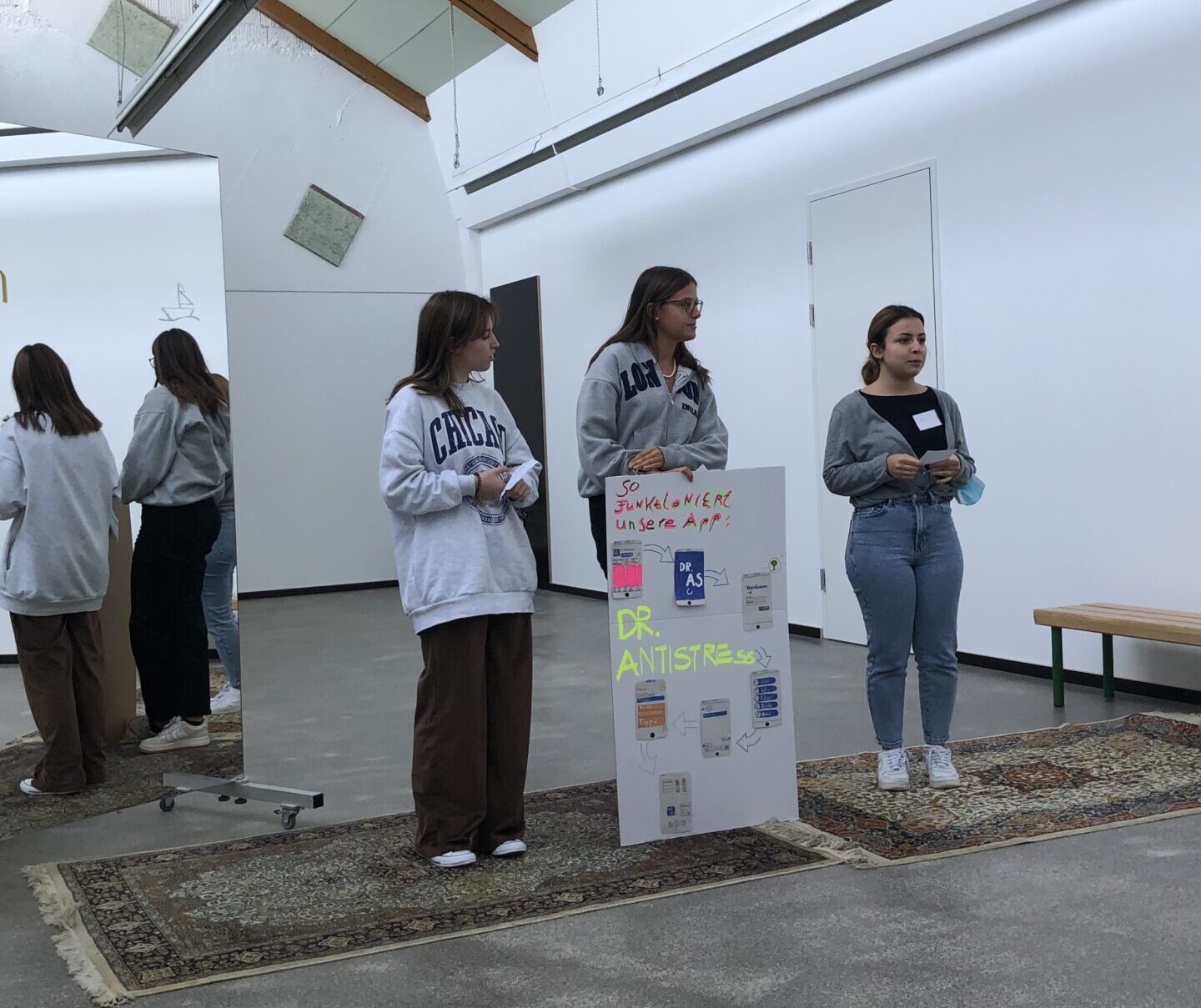 Hut ab, was da für Ideen entstanden! Von Blättern aus denen Verpackungsmaterial entstehen soll, über ein Disko-Konzept inklusive Shuttle für Jugendliche – alles vereint in einer App, über eine Dr. Antistress App für Jugendliche – chatten zum Stressabbau mit Experten und einigen mehr.