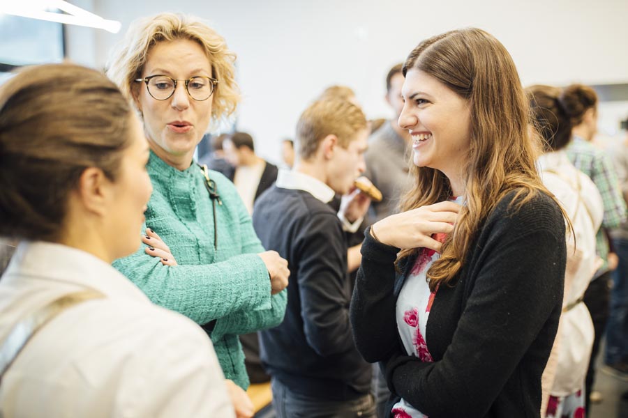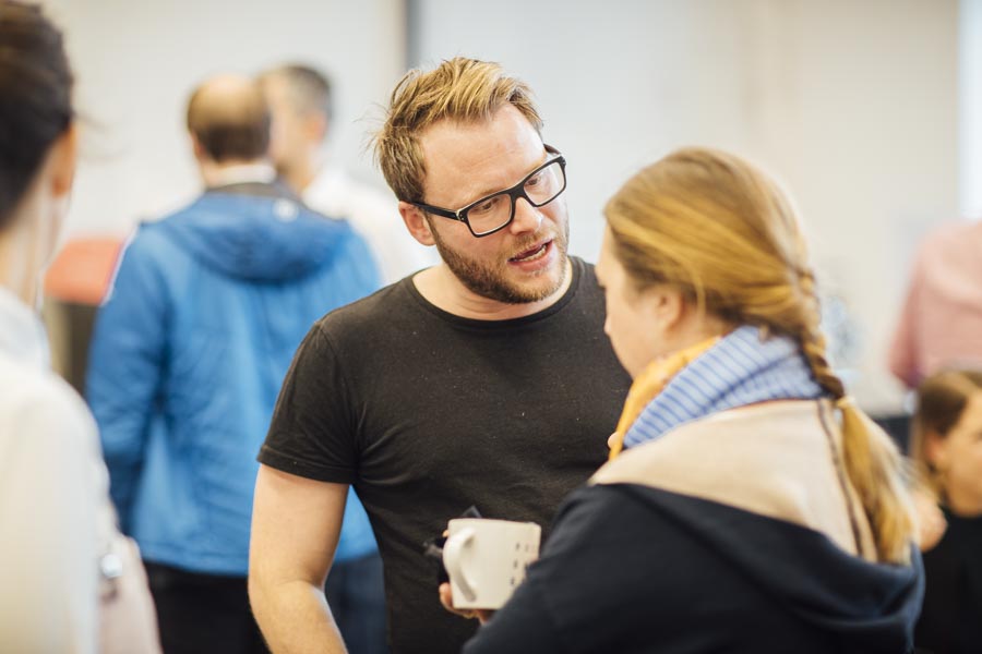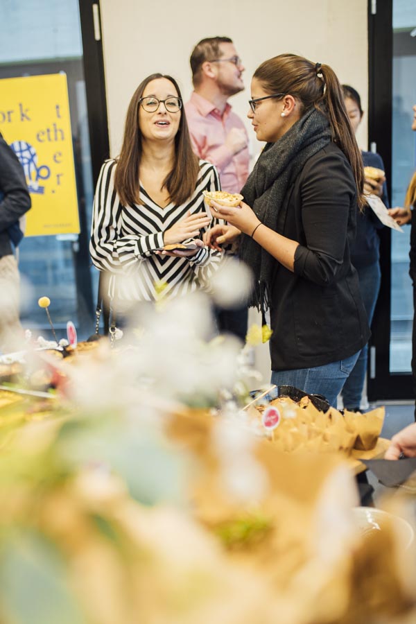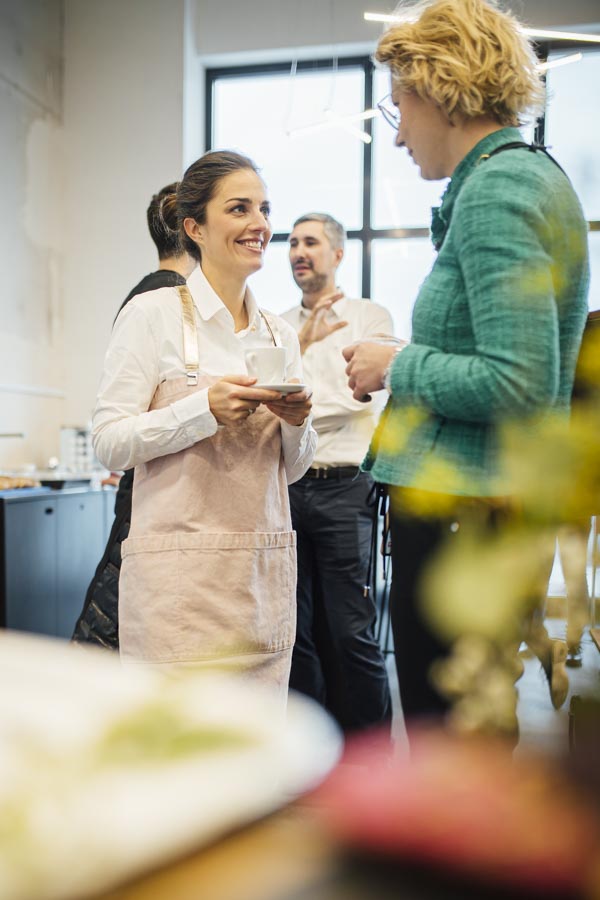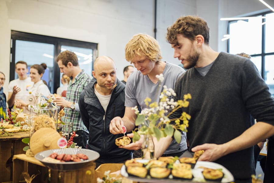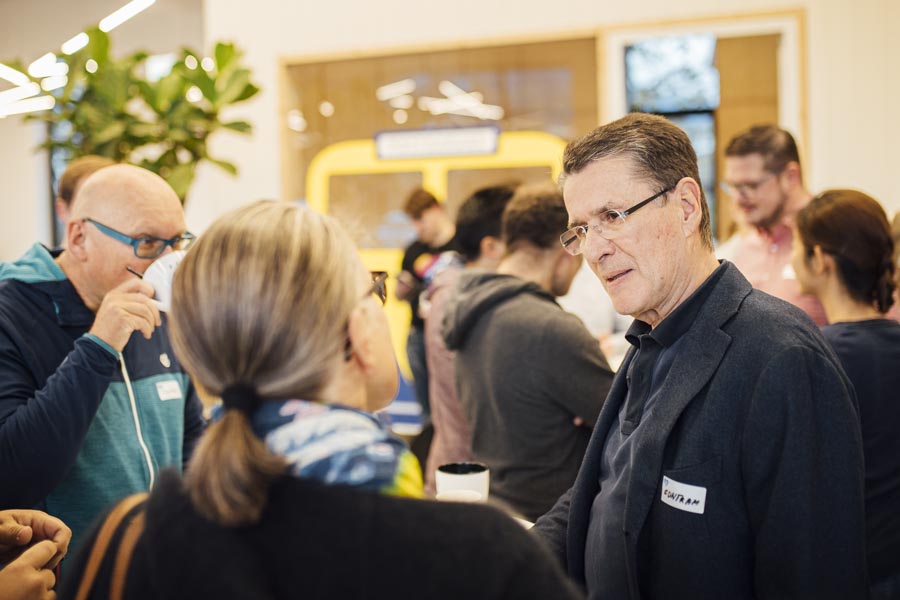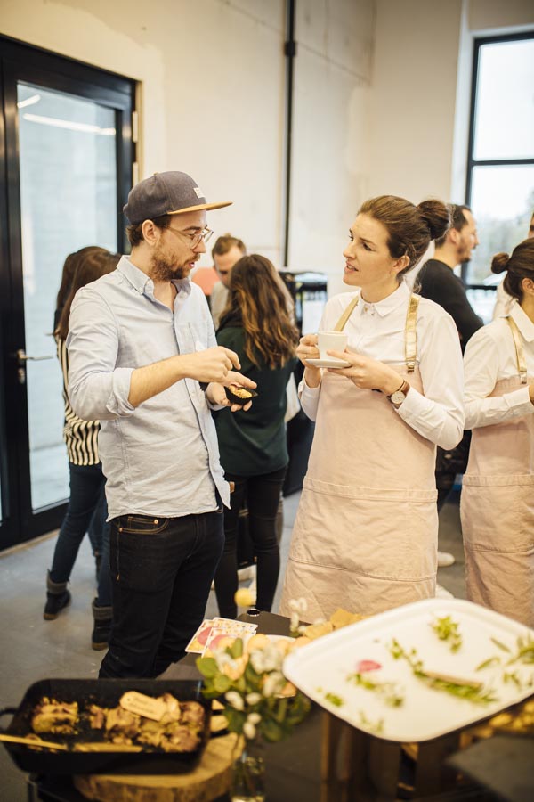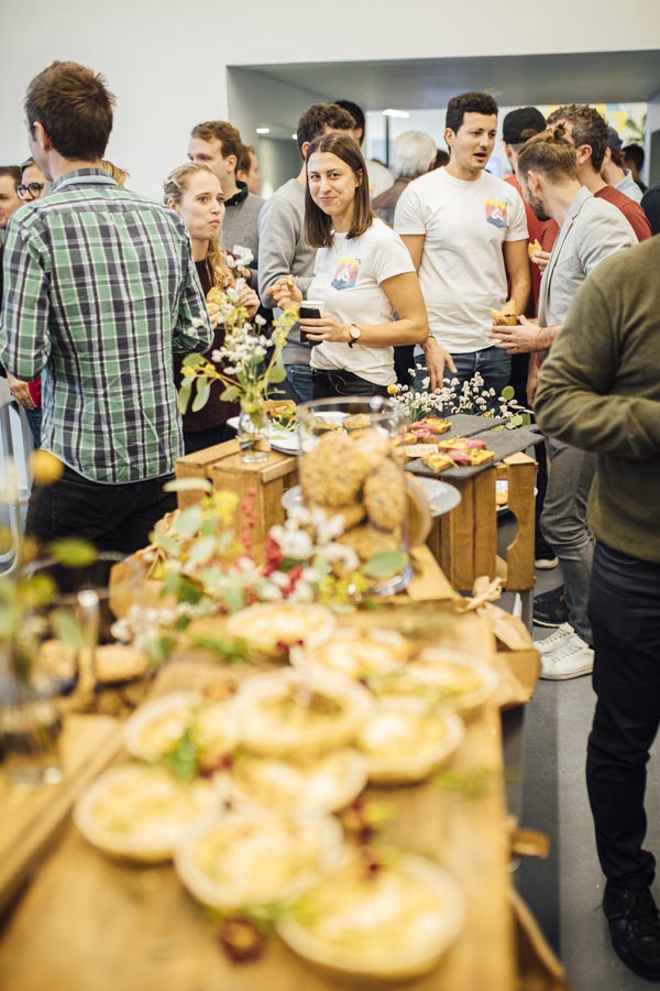 Bei frischen Zimtschnecken und Kaffee ging es anschließend zum Austauschen und Netzwerken beim gemeinsamen Frühstück. Ein liebevoll angerichtetes Buffett von der Begeisterei erwartete die Besucher. Mit Kaffee und frischen Snacks bestückt, wurde das Gehörte reflektiert, überlegt, neue Ideen geschmiedet und nebenbei die Räumlichkeiten der Postgarage – genauer gesagt des Postgarage Innovation Hubs besichtigt.