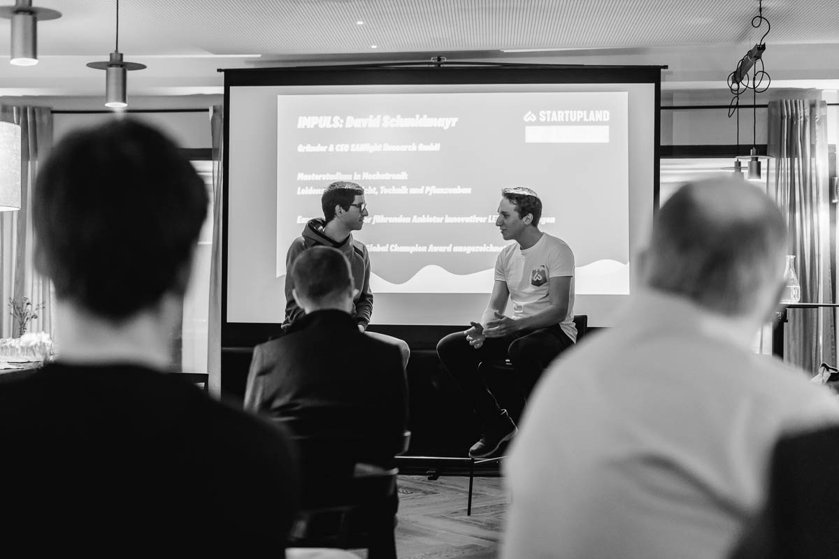 Diese gab uns CEO und Gründer der SANlight Research, David Schmidmayr, im Gespräch mit Simon Sohm. David kombinierte seine Faszination zu Pflanzen und der Leidenschaft zur Technik. Schon während seines Masters an der Fachhochschule Vorarlberg und der Arbeit im Labor beschäftigte er sich mit der LED-Technik. Und verschaffte sich immer tiefere Einblicke in die Materie: “Ich wusste was Stand der Technik war”. Dieses Wissen war anschließend bedeutend in der Kommunikation zum Kunden.